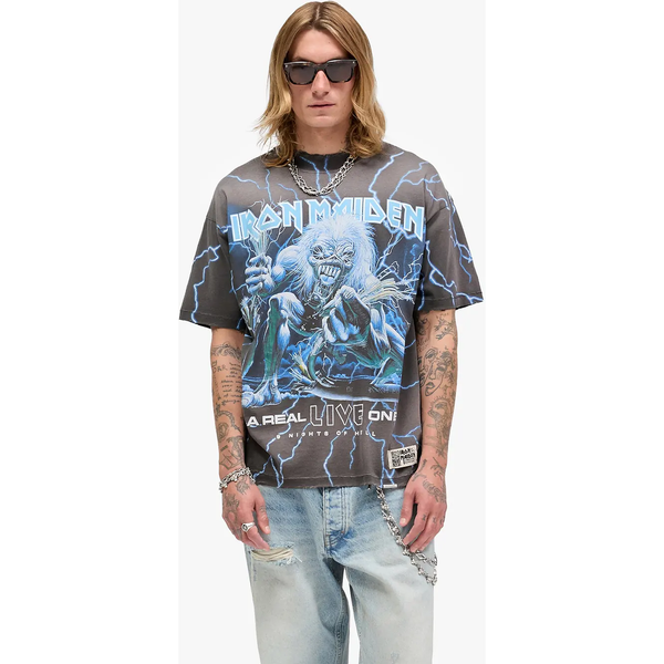 Introducing the Metallica Ride the Lightning T-Shirt in Vintage Grey. This t-shirt has a full front and back jumbo print application. The back print features a hand painted Represent logo paying homage to the analogue techniques of the ‘80s. The addition of a hand rising from the grave acts as a point of remembrance to deceased band member, Cliff Burton, whilst the application process sees a washed screen print with a true vintage feel, both in hand feel and finish.