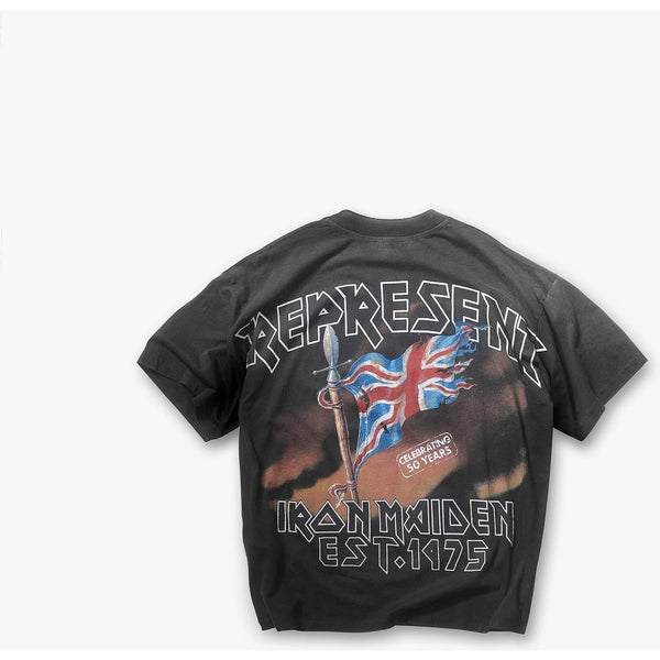 The t-shirt is crafted from a slub fabric for an authentic vintage inspired drape, texture and weight. It has vintage ladder stitch details with distressing to the collar, armholes and hem, and is finished with the Represent metal bar logo to the hem and 40 year anniversary patch to the front.